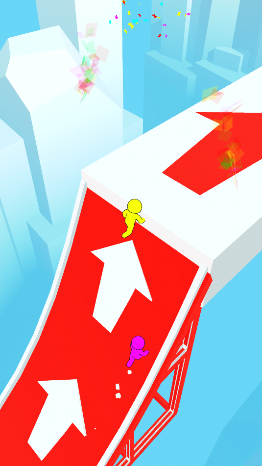 3、快到关卡终点时,需按住屏幕持续奔跑,必须以很快的速度才能冲上终点。