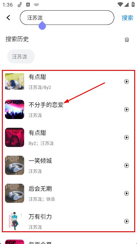 3、在搜索结果中,选择想听的歌曲,如不分手的恋爱,进入音乐播放页面。