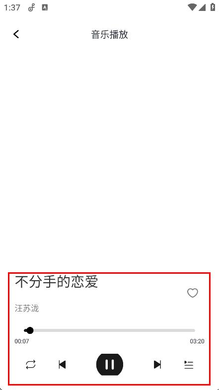 4、在音乐播放页面,可进行播放、暂停、调节音量等操作,聆听不分手的恋爱。