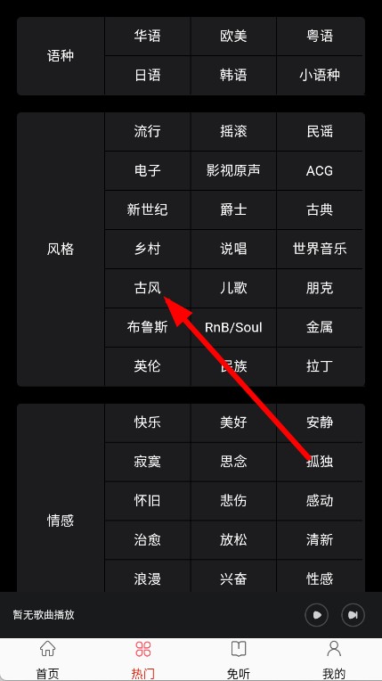 2、在热门页面,选择古风风格分类。