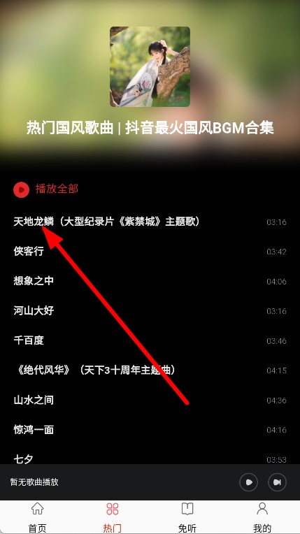 4、进入歌单后,点击想要播放的歌曲,即可开始播放。