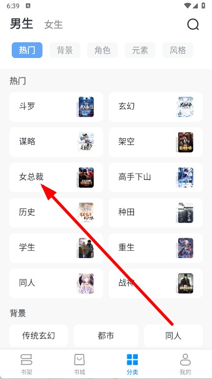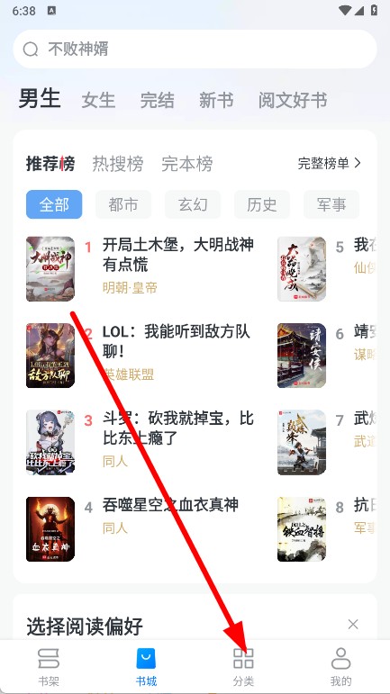 2、在分类页面,选择感兴趣的小说分类并点击。
