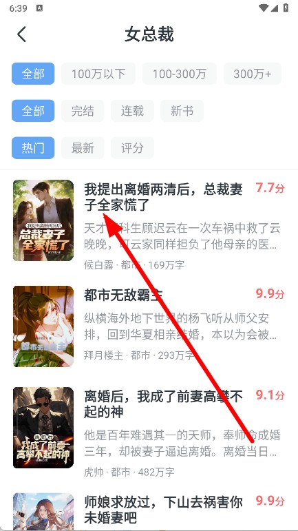 3、在分类详情页中,浏览小说列表,选择想要阅读的小说并点击。