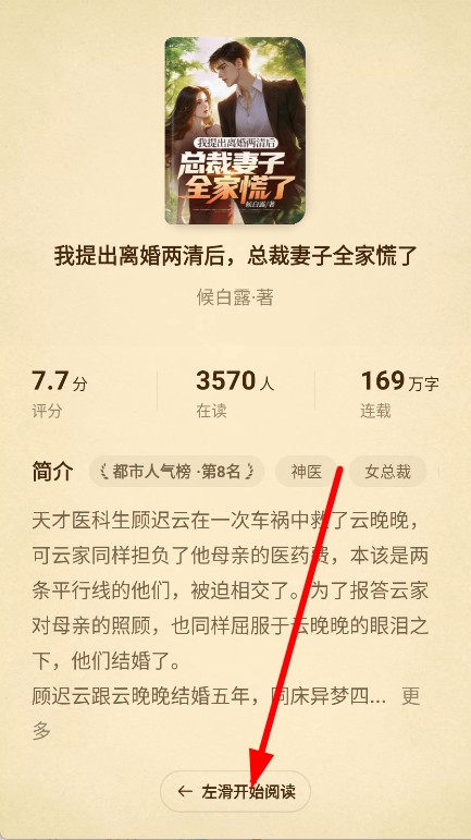 4、进入小说介绍页面,左滑屏幕,即可开始阅读小说。