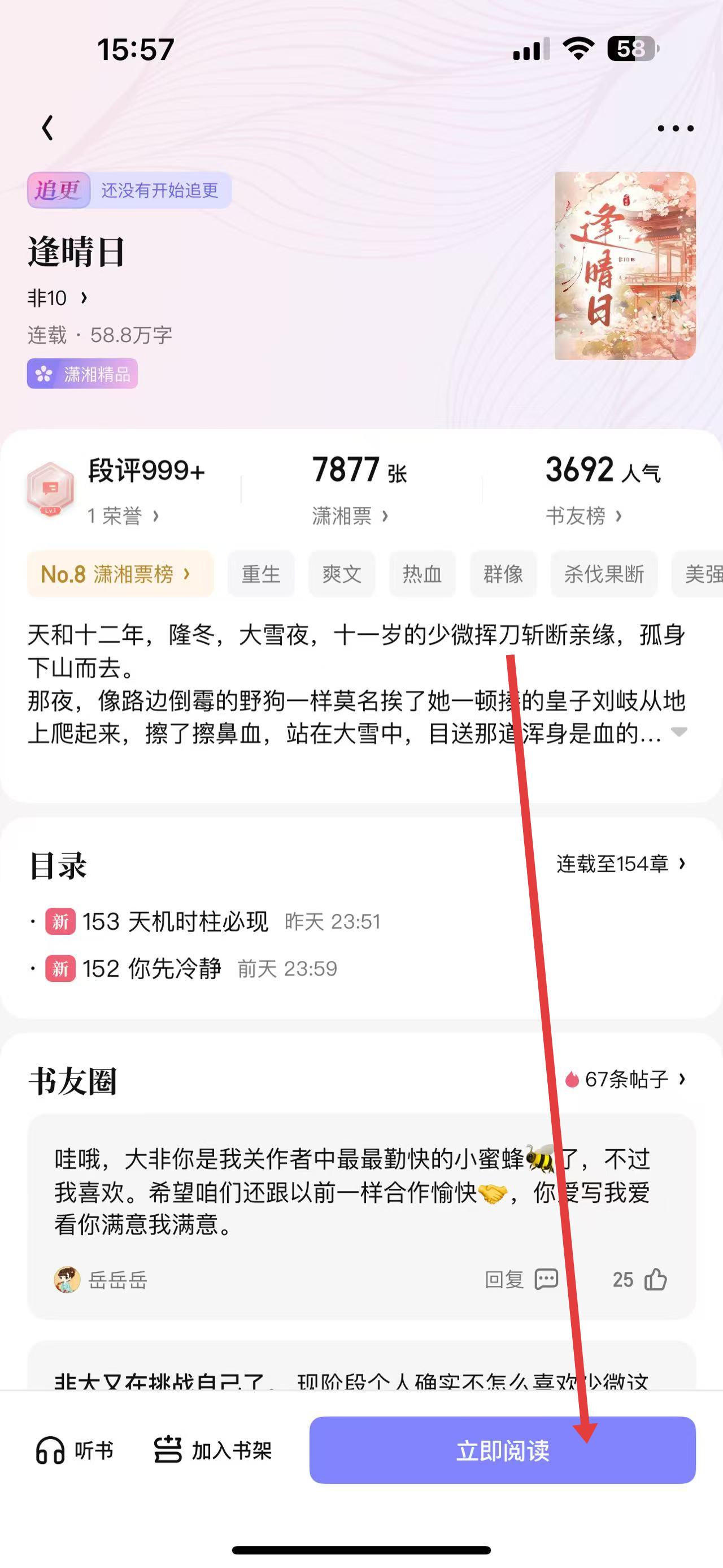 2、进入小说详情页后,点击立即阅读按钮,进入小说阅读界面。