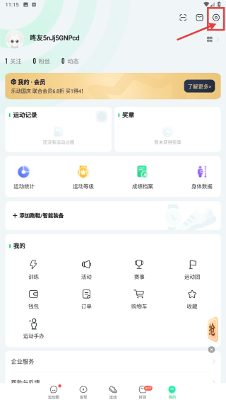 1、打开运动类应用,点击底部我的选项,进入个人中心页面。