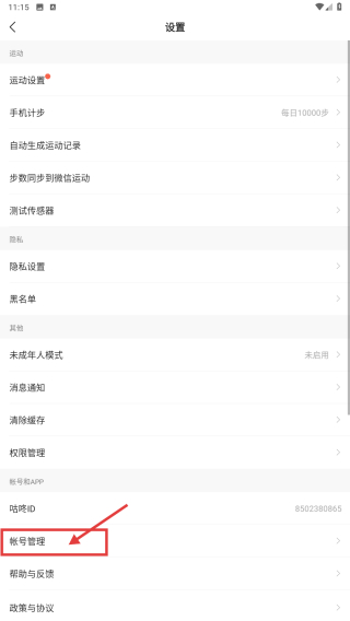 3、在设置界面,点击帐号管理选项,进入帐号管理页面。