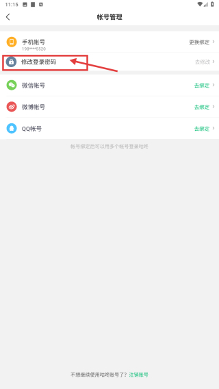 4、在帐号管理页面,找到修改登录密码选项,可进行密码修改操作。