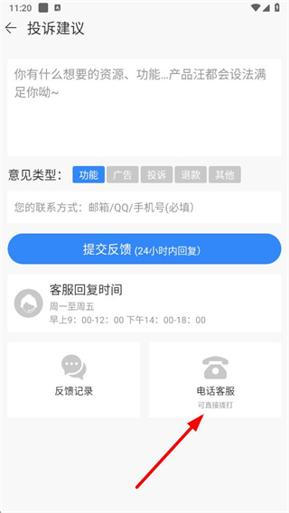 4、若需电话联系,可点击页面下方电话客服直接拨打电话。