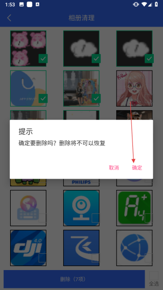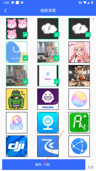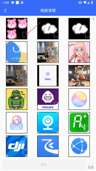 2、在相册清理页面中,浏览并勾选需要清理的图片。