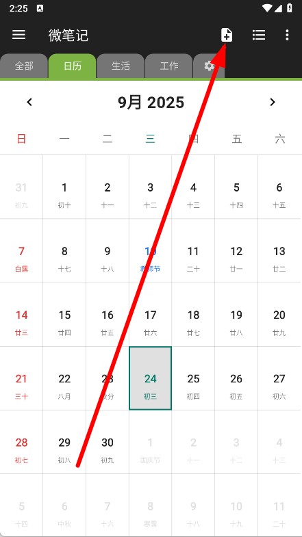 1、打开微笔记,点击右上角的加号图标创建新笔记。