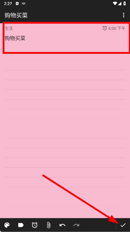 4、设置完成后,点击右下角的对勾图标,保存笔记及提醒设置。