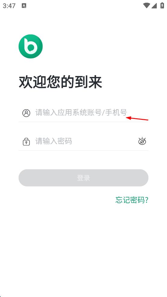 2、进入登录页面,在应用系统账号/手机号输入框中输入手机号码。