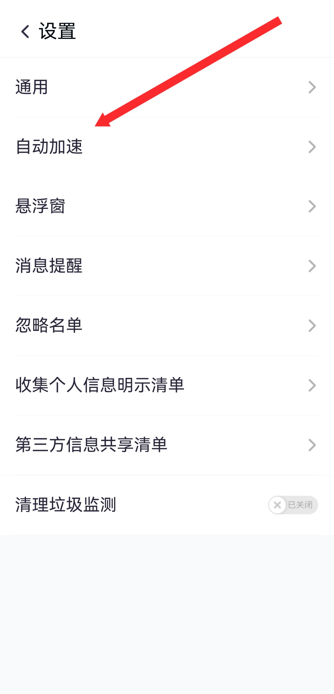3、在设置的界面,点击自动加速,进入自动加速设置的页面。
