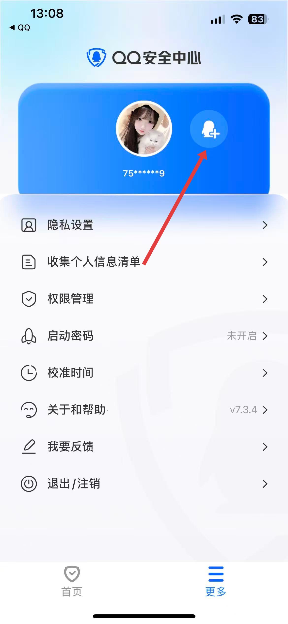 2、在更多界面里,点击头像旁的添加账号图标。