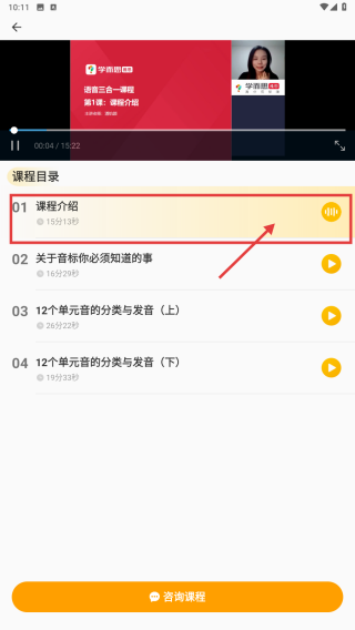 4、在课程学习页,点击课程介绍选项,开始课程学习。