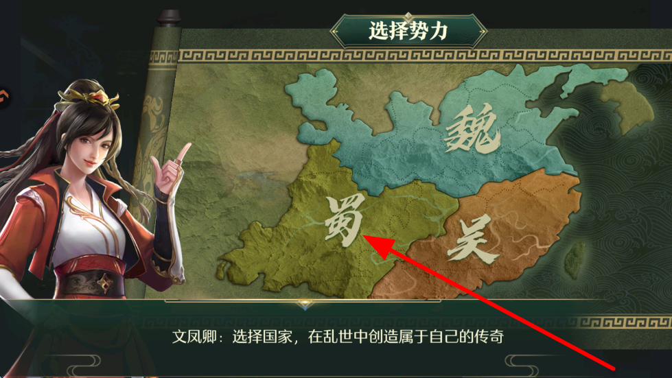 1、进入游戏后,在魏、蜀、吴等势力中选择,不同势力有不同的发展方向与特点,选好势力,开启在乱世中创造传奇。