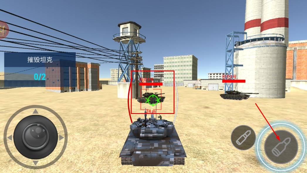 3、遇到敌方坦克时,点击右侧攻击按键,向敌方坦克发起攻击,尝试摧毁它们。