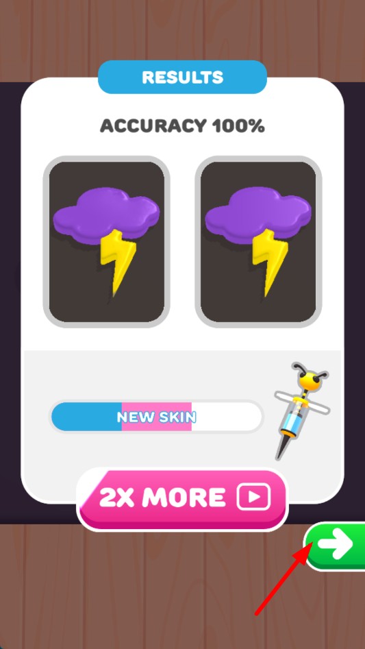 4、完成颜色填充后,若结果显示准确率100%,点击绿色箭头按钮,可进入后续环节。