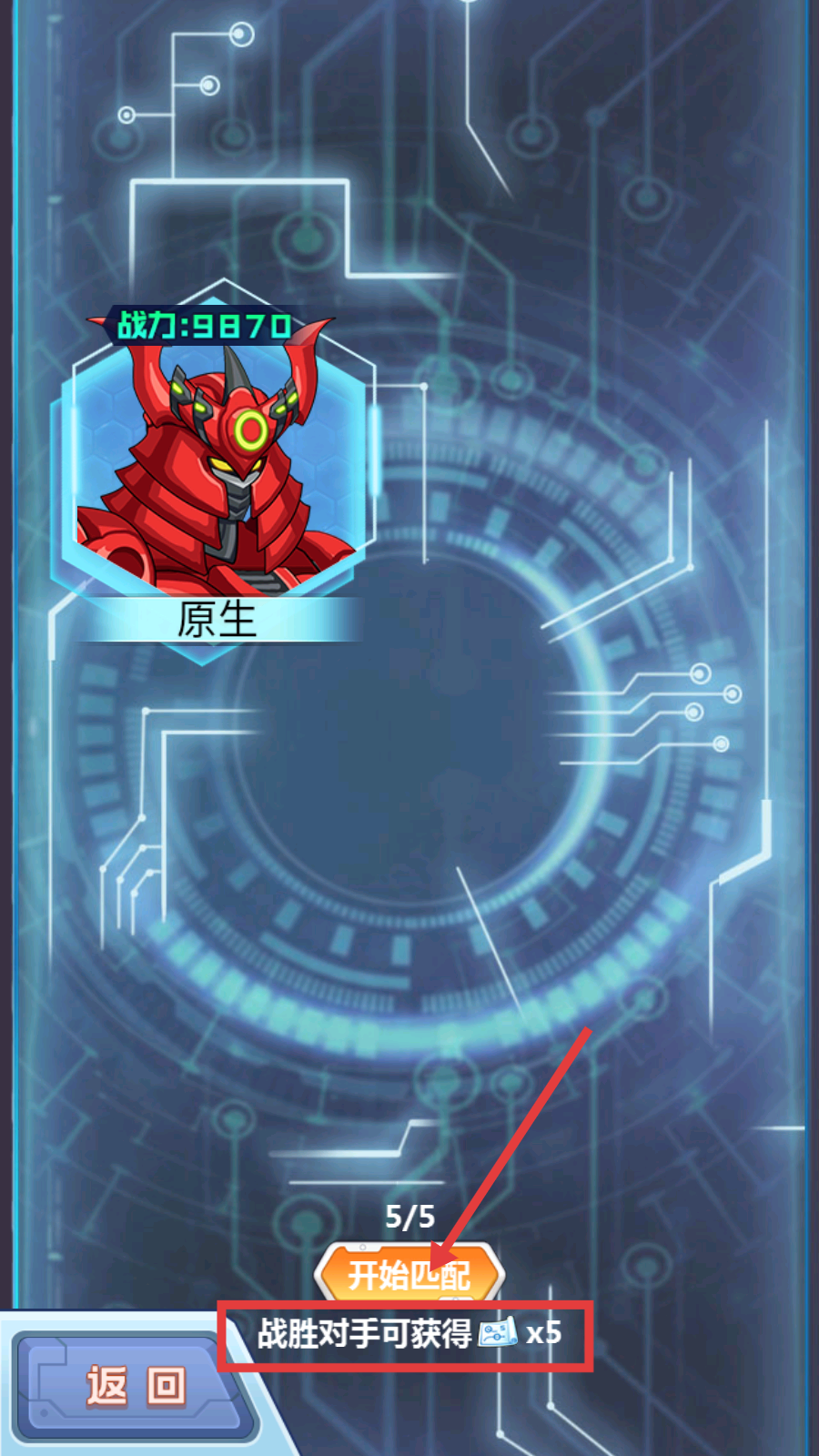 2、点击【开始匹配】按钮,参与对战,战胜对手可获得【5】个道具奖励,积累资源。