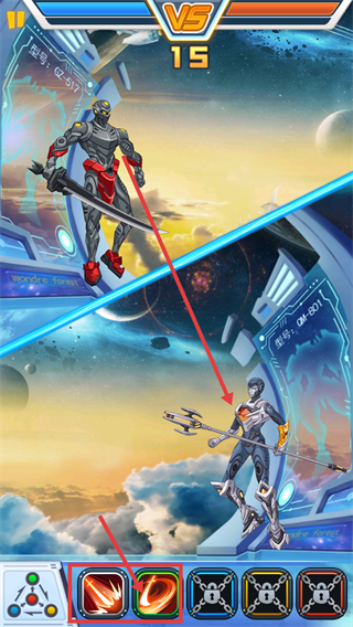 3、对战时,利用下方解锁的技能图标,释放技能攻击敌方机甲,争取战斗优势。