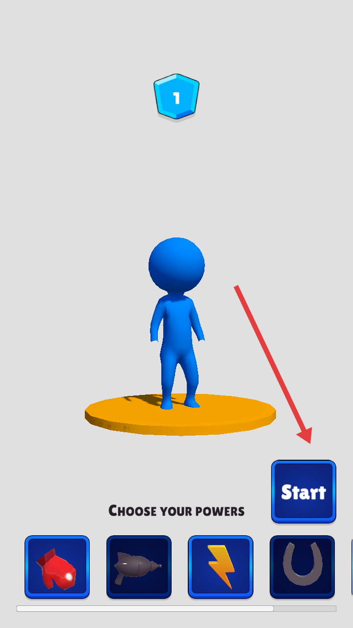 1、点击Start,选择能力后进入战斗关卡,开启格斗挑战。