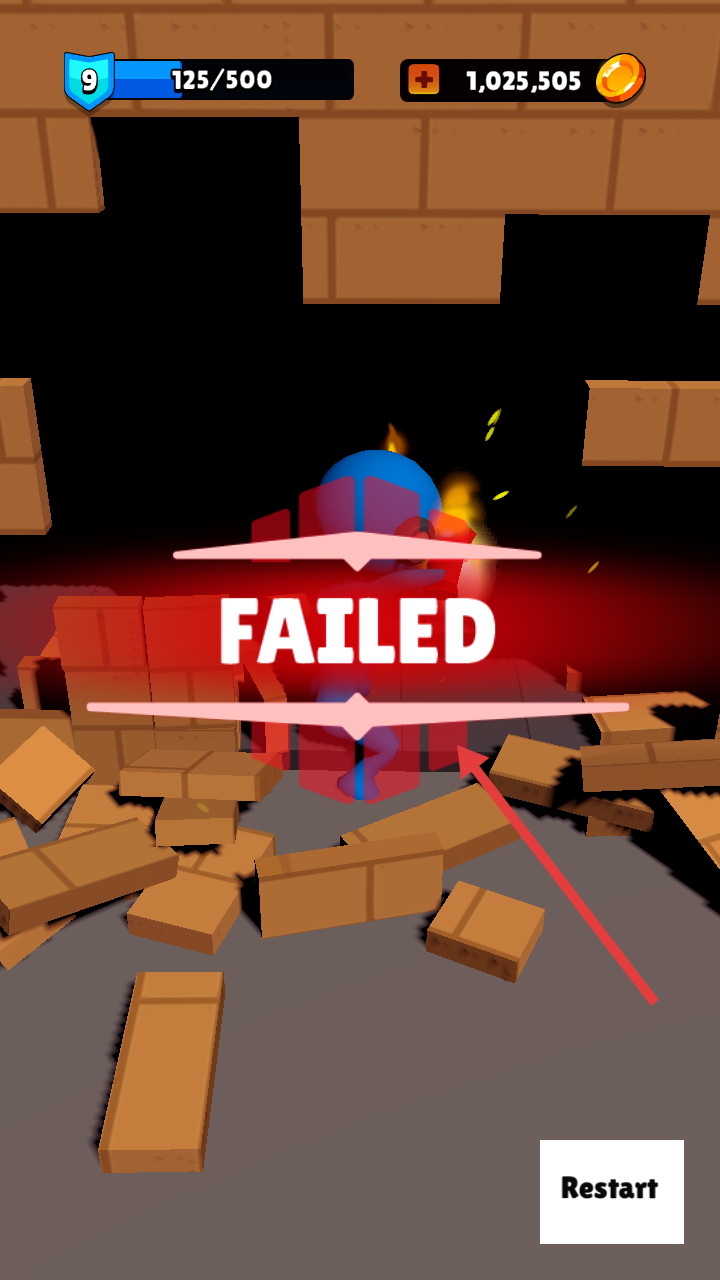 4、若挑战失败显示FAILED,点击Restart按钮重新挑战,调整战斗策略后再次尝试。