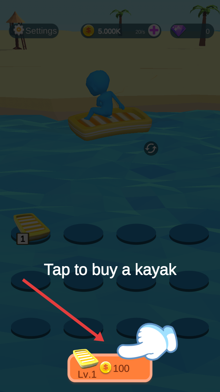 1、消耗100货币购买Lv.1皮划艇,为泳池竞技做好准备。