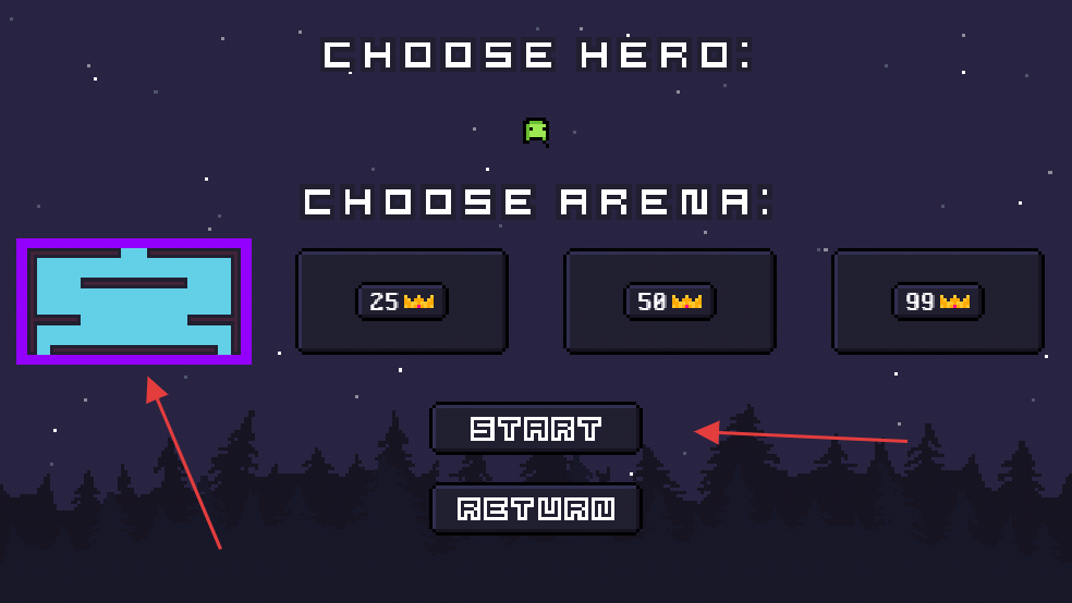1、在选择界面,先确认已选的竞技场,然后点击“START”按钮,进入游戏场景。