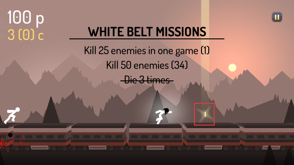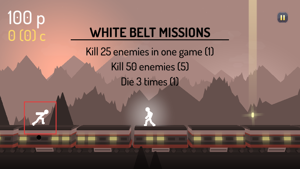 1、黑白分明视觉风格:全场景采用黑底白形设计,白色火柴人与黑色影子敌人对比强烈,既能突出战斗焦点,又营造出简约紧张的氛围。