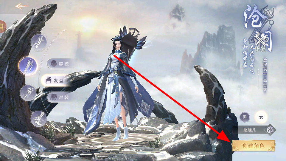 1、进入游戏后,进行角色创建,选择心仪的角色形象等,确定后开启仙侠冒险之旅,为后续战斗等操作做好准备。