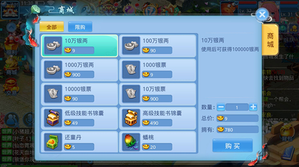 6、商店兑换----这个简单粗暴,可以充点小钱在商城购买银两。