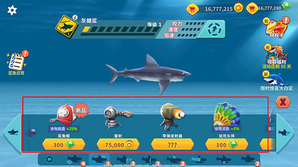 2、利用独特的鲨鱼基因和能力让自己变得越来越强大,探索海底世界,灵活魅力海景。