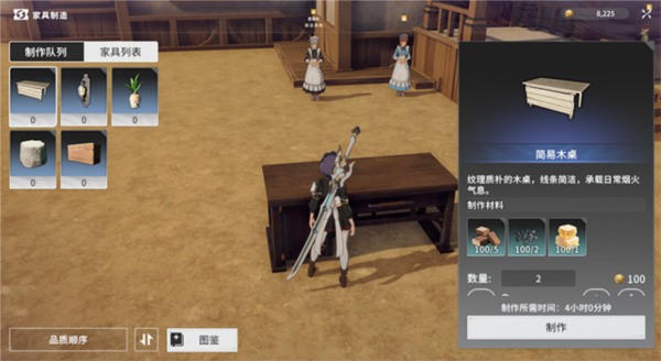 制造所需的材料可通过生活职业生产获取,更多高级家具配方也会随着生活职业升级而解锁。