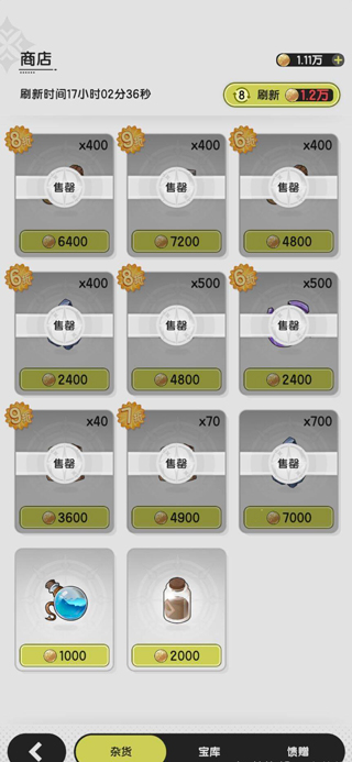 7、家园商店:首先杂货方面平民建议刷新两次就行(就是到8000刷新的时候就停),把里面打折的购买了(如果金币不缺可以全买)宝库里的先领体力,其他打折的商品都买,基本只要有晨星肯定每天能买满的。