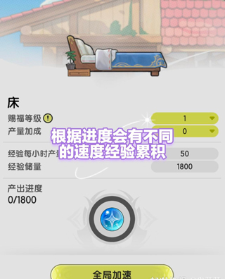 8、家园床:挂机经验获取渠道,一定要记住每天床的每日加速,必须留到你今天开完了地图,打完了所以任务和副本后在开启,这样可以经验和资源获此最大化。(尤其是女神像开启,会增加产出比)