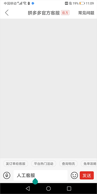 3、然后在打开的客服消息发送界面中输入人工客服字样后点击发送就会帮你转人工的