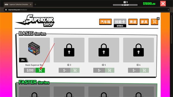 2、进入SUPERCARSHOP界面,选择可购买的BASICSeries汽车箱。