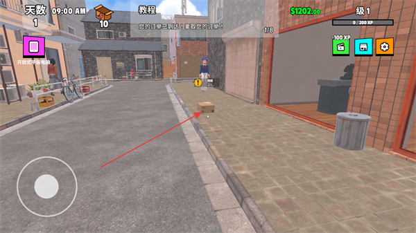 4、购买成功后,操控角色移动,捡起地上的箱子,开始经营布置店铺。