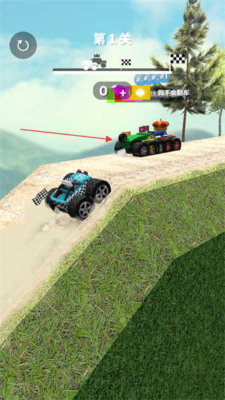 1、进入第1关,点击屏幕操控按钮,驾驶赛车在越野赛道上前进。