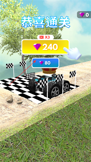 4、率先冲过终点线,看到恭喜通关提示后,领取钻石奖励进入下一关。