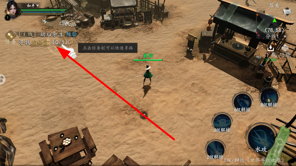2、跟随主线任务,点击任务栏,能快速寻路,按照任务指引前往指定地点,获取经验等奖励。