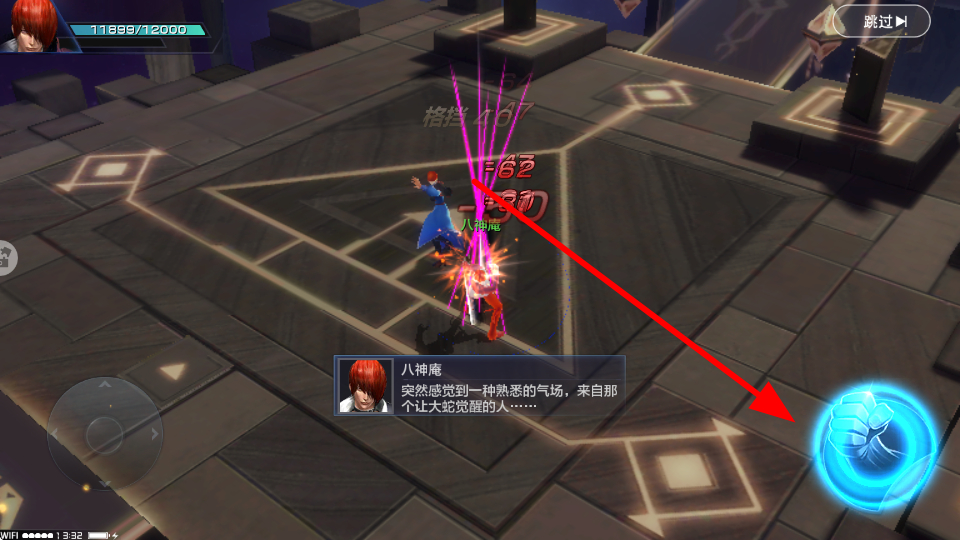2、点击右侧拳形按钮,触发普通攻击,对敌人造成伤害,多次点击还能形成连招。