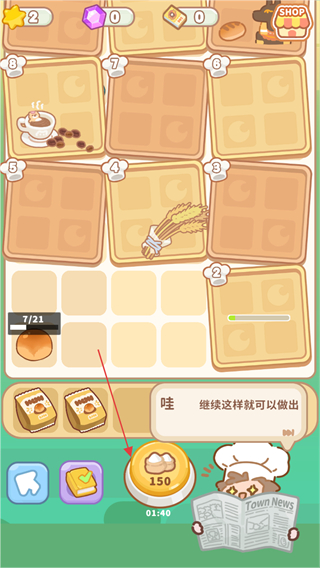 2、留意屏幕中的任务提示,比如收集一定数量的面包7/21,按要求持续制作面包。