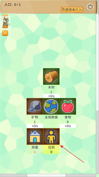 3、建造好房屋后,消耗食物资源,点击居民图标招募居民。