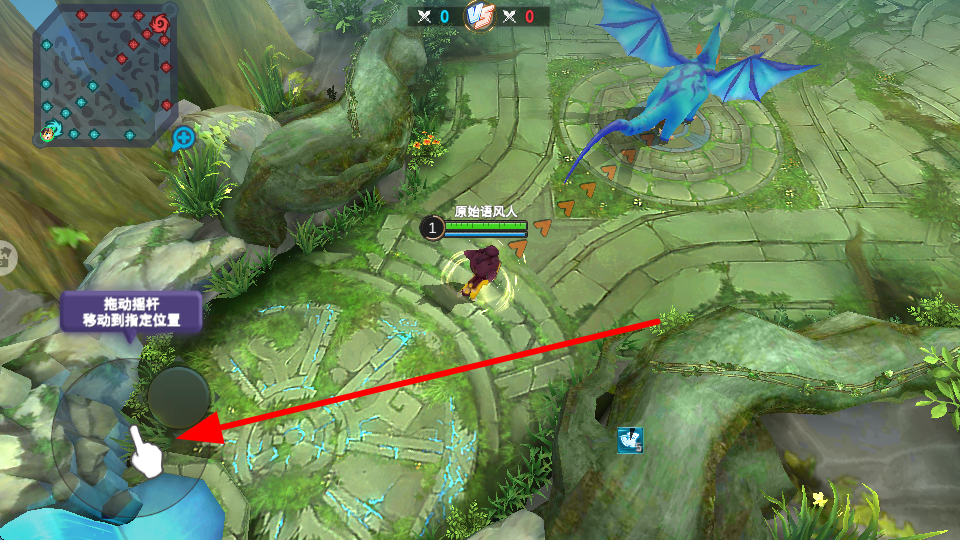 1、移动依靠左下角摇杆,能控制英雄在地图中前进、后退、向左或向右移动,以此调整战斗位置。