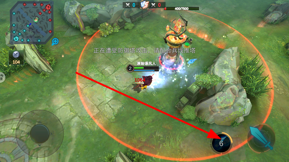 4、要配合兵线推进,在兵线吸引防御塔火力时,操控英雄对防御塔进行攻击,削减防御塔血量将其摧毁。
