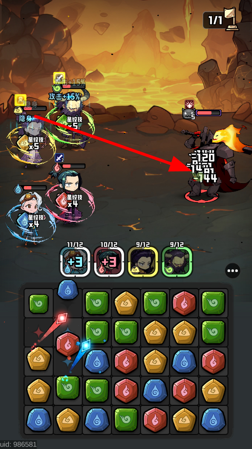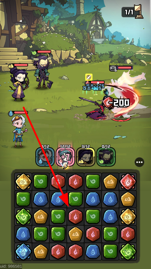 1、在游戏下方的宝石区域,通过移动宝石,把3枚同色的宝石连成一排,这样就能触发攻击条件。
