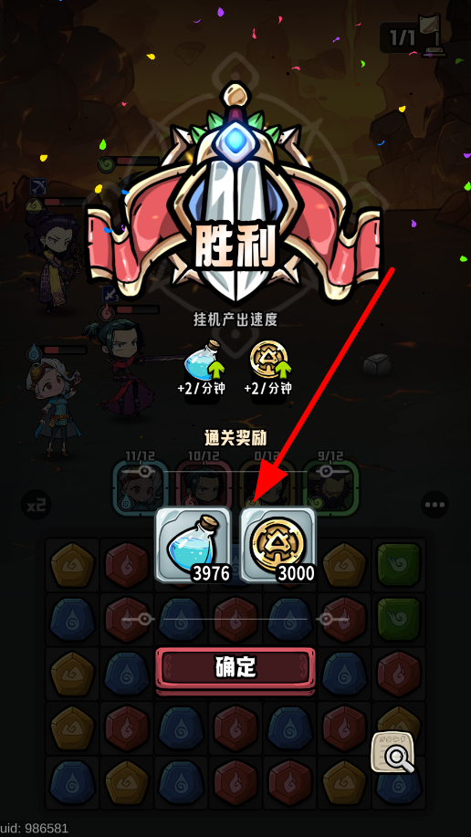 4、持续通过消除宝石发起攻击、释放技能,击败所有敌人后,就能获取胜利,获得金币、经验等奖励。
