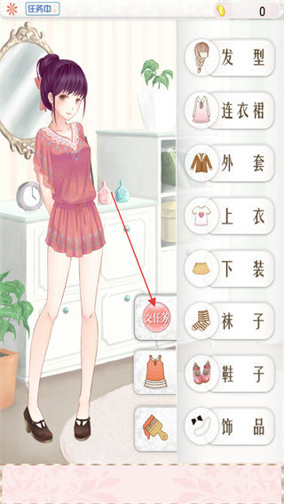 4、完成上衣、下装、鞋子等整体搭配后,点击交任务提交换装成果。